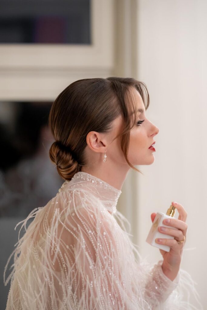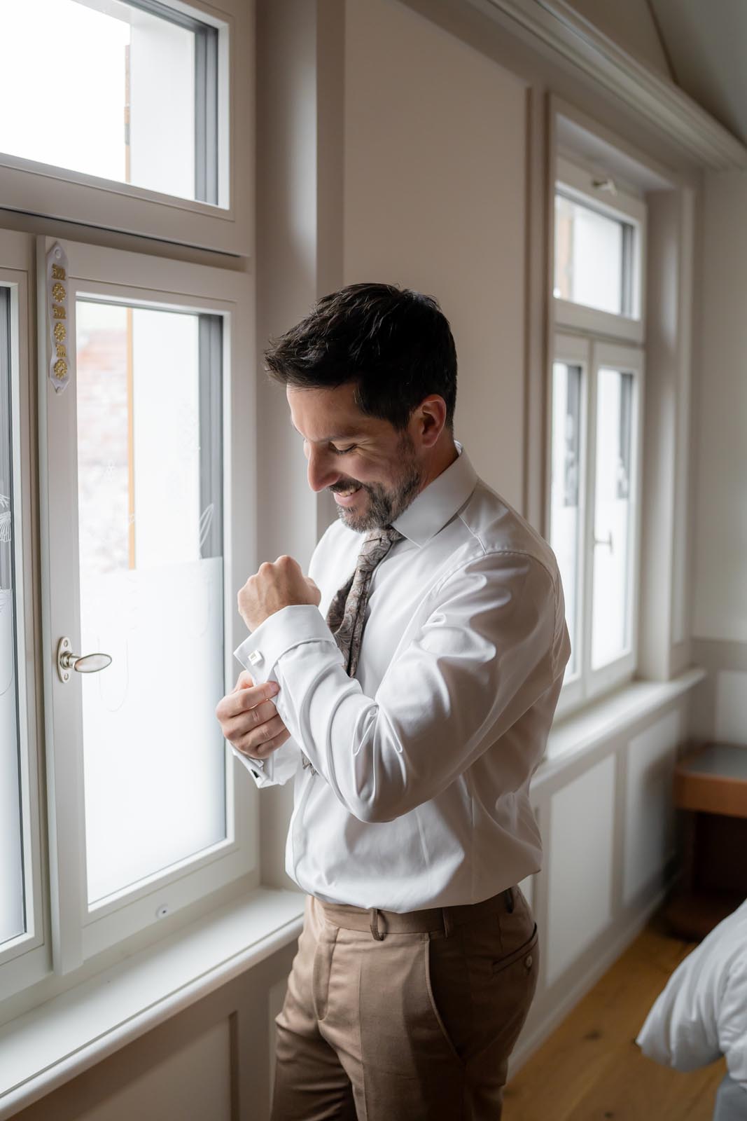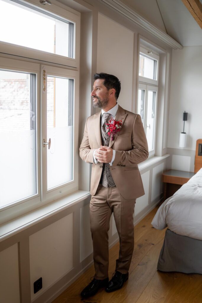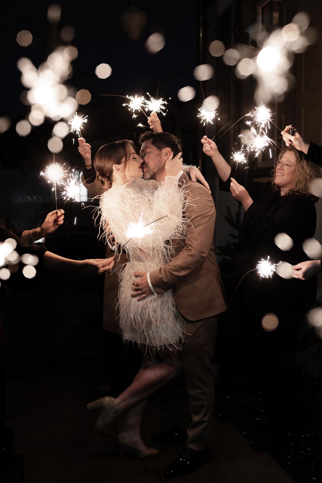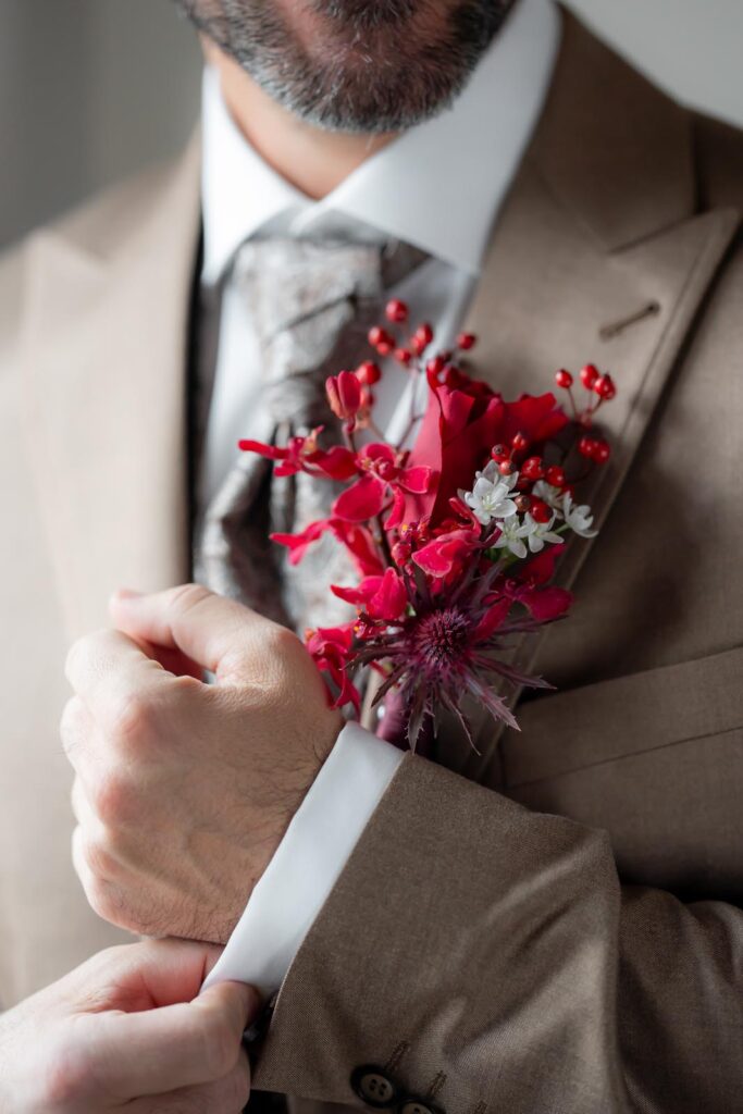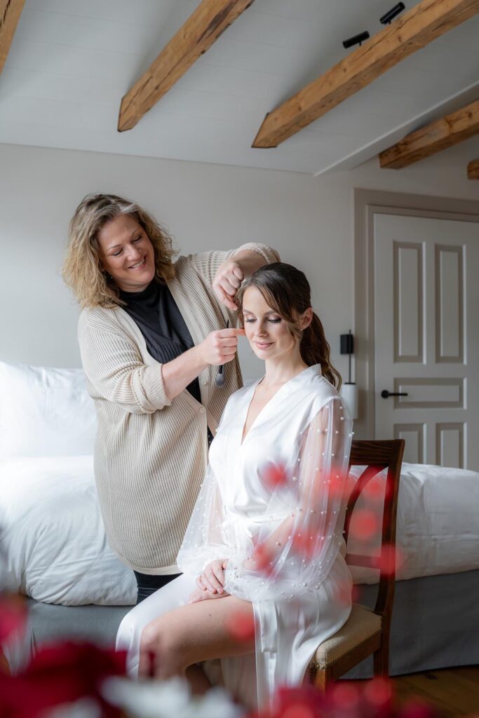 Ein wunderschönes Hochzeitsshooting in der weihnachtlichen Atmosphäre des Appenzeller Huus – Rot- und Goldtöne, Kerzenschein, Lichterketten – ein Hochzeitstraum inmitten einer verschneiten, winterlichen Atmosphäre.