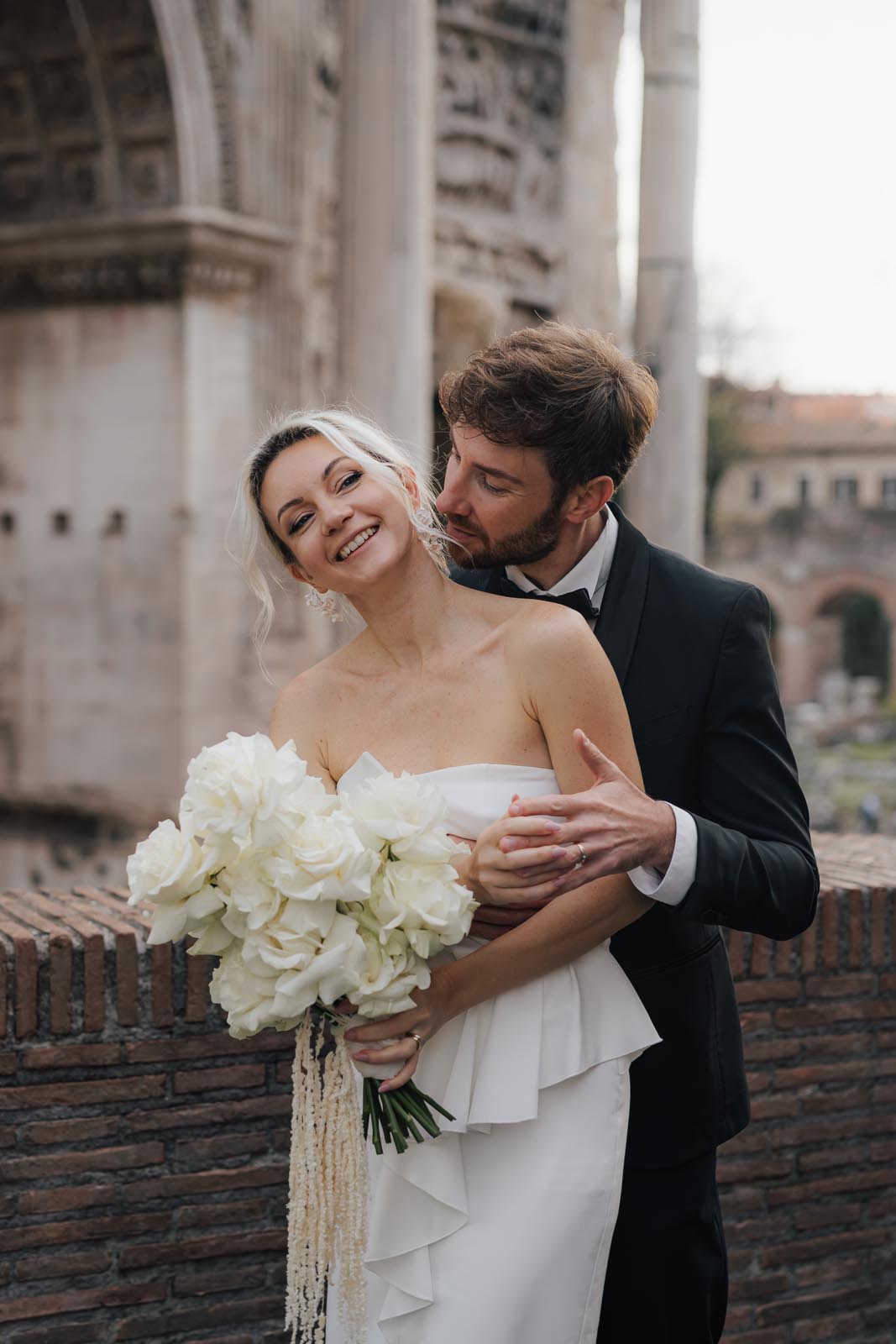 Ein sonniger Dezembertag in Rom und ein unvergessliches After Wedding Shooting in der Stadt, die sich durch eine Kombination aus antiker Geschichte und modernem Charme auszeichnet. Die weltbekannte Kulisse des Forum Romanum bot einen unvergesslichen Kontext für dieses Shooting.